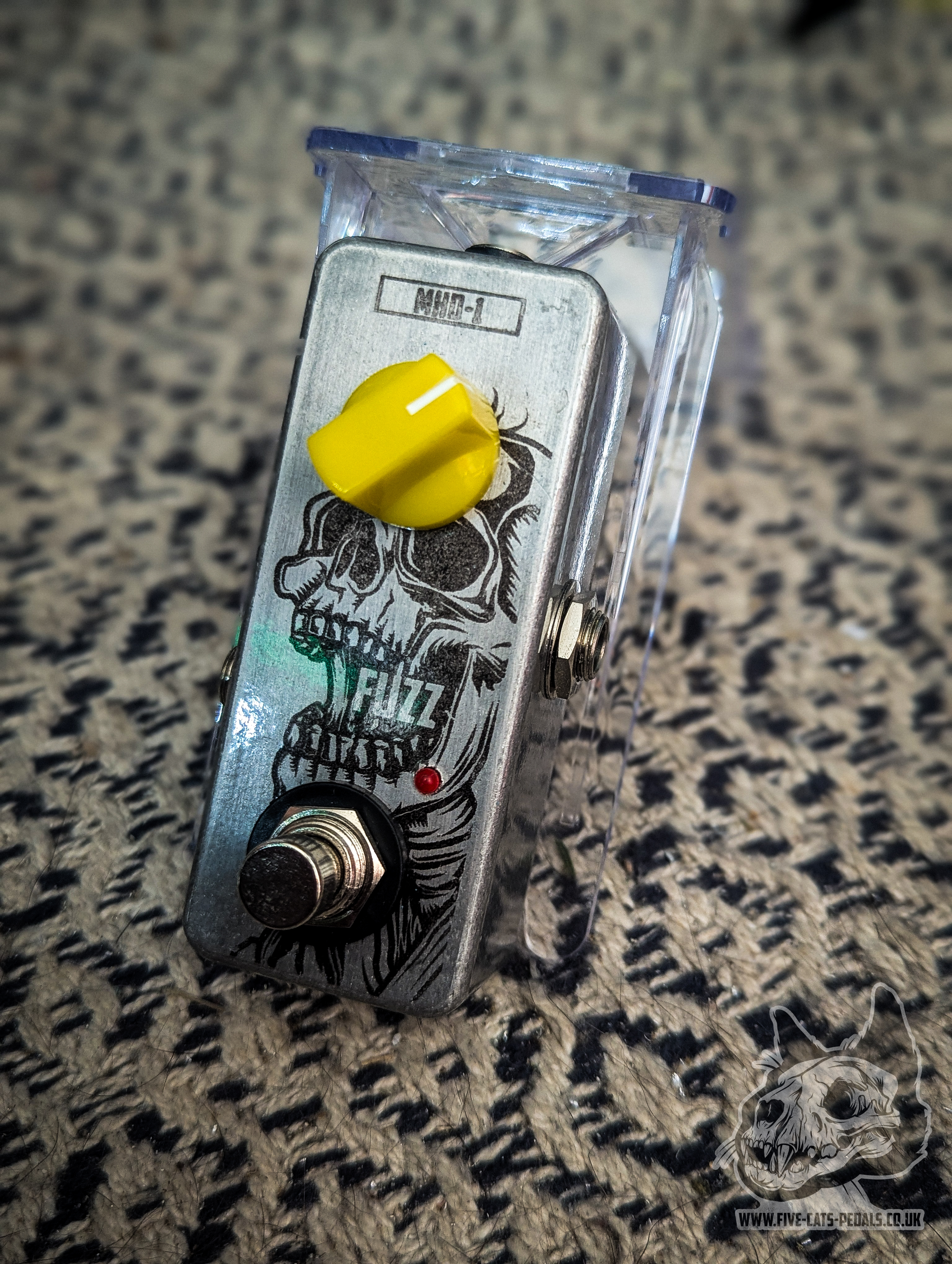 The very last of our old style one knob fuzz pedals! With a cool skull design in a 1590A sized enclosure, with a Dark Meat Head variant fuzz inside..its a belter!